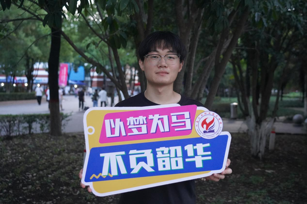 机械工程学院机械设计与制造专业——李英杰:一进河南工院的校门就感觉特别好。校园环境干净漂亮,学长学姐都很热情,学校的实训设备看起来也很专业、很齐全。我觉得自己选对了学校,希望在这里能学到真本事,为将来找个好工作打下坚实的基础。