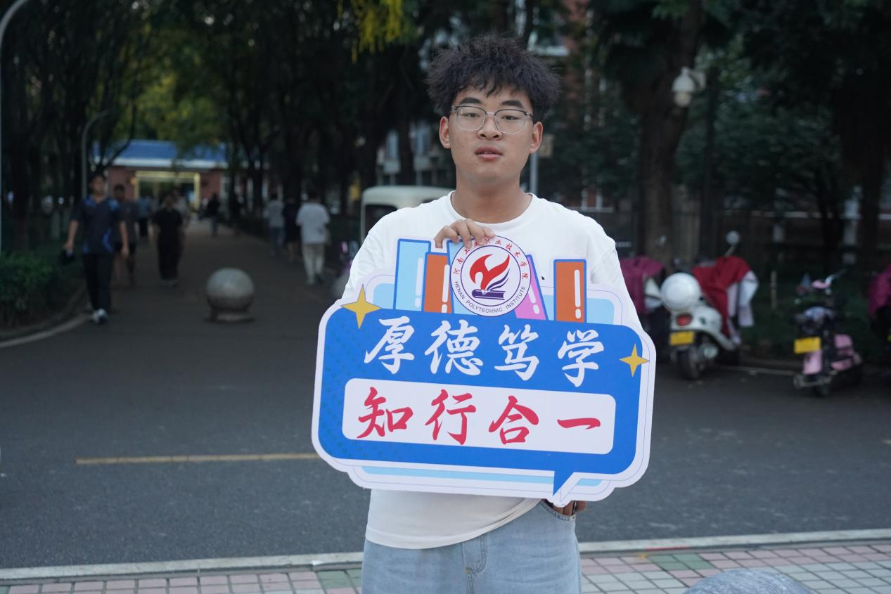 经济贸易学院网络营销与直播电商专业——吴诗雅:第一次来到河南工院,校园比想象中大,环境整洁,食堂饭菜香。老师和学长学姐都特别热情,让我一下子就不紧张了。后续我也会做好学习计划,认真努力的学习。我对未来的大学生活充满期待。