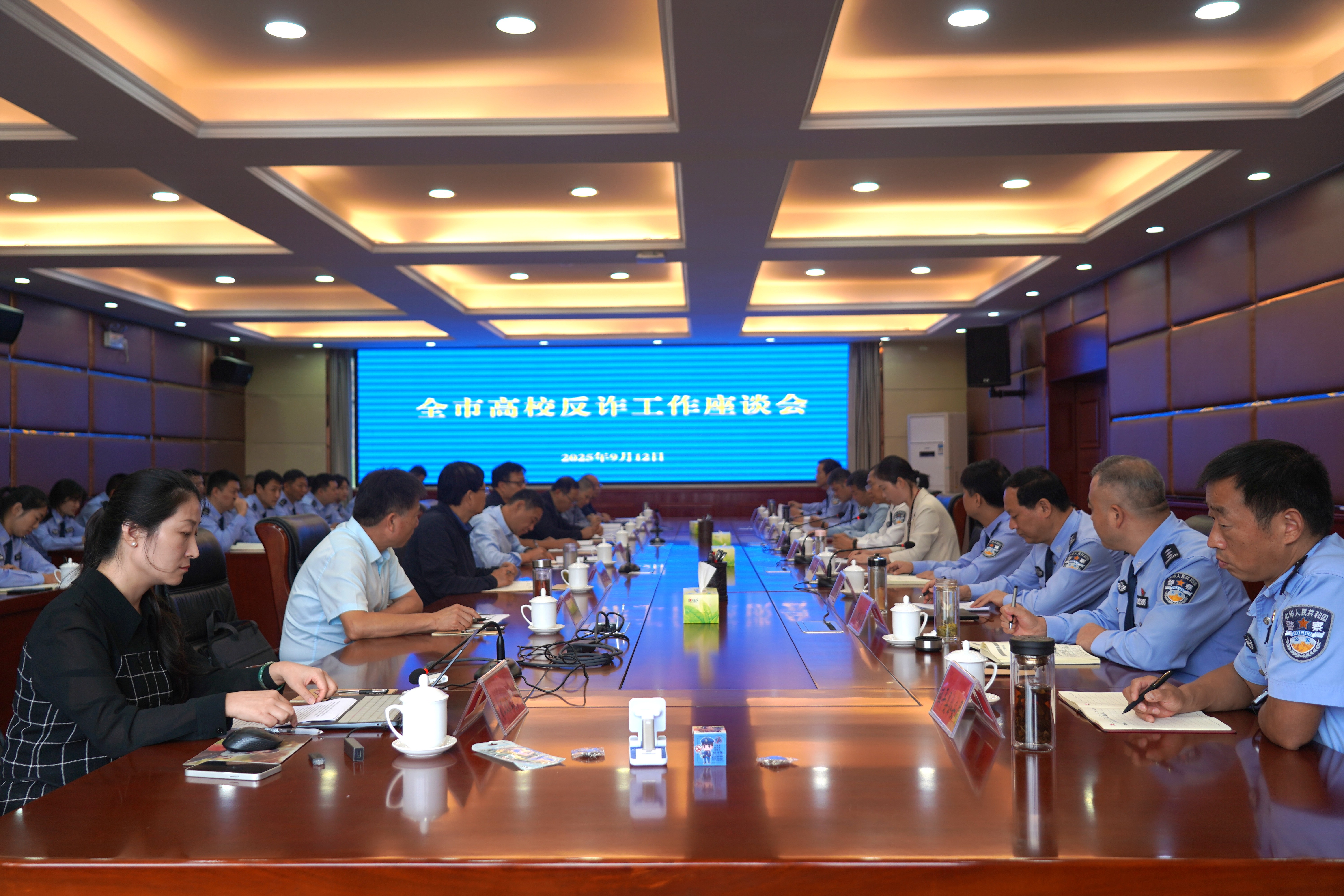 全市各高校分管安全工作的校领导及保卫处、团委负责同志,高校所在地县级公安机关分管副局长、反诈中心负责人及社区民警参加会议。(供稿/保卫处 撰稿/王存才 摄影/郭君扬 单位审核/王存才 编审/赵国峰)