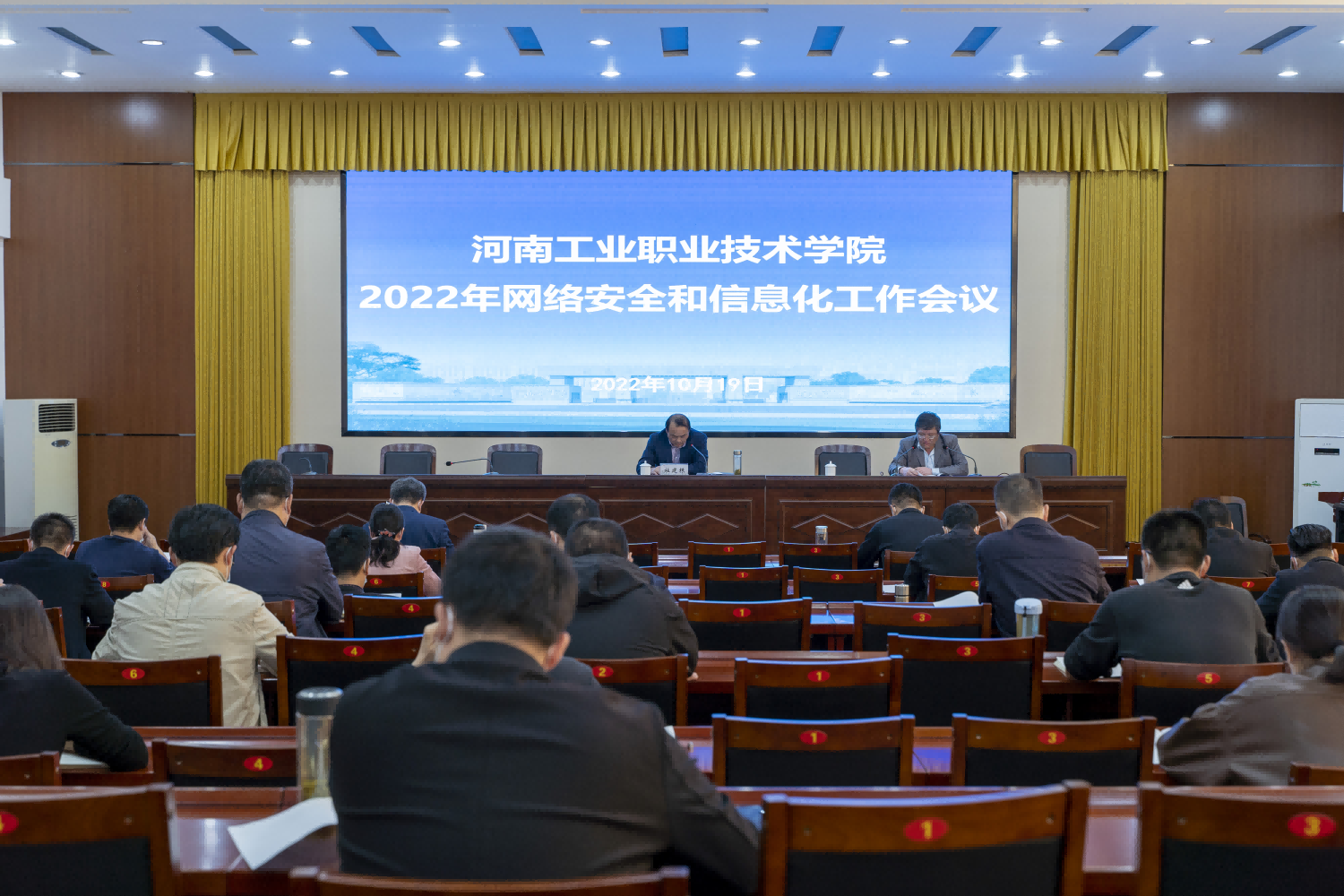 10月19日下午,学校在一楼会议室召开2022年下半年网络安全和信息化工作会议,校党委副书记杜建根主持会议,学校各单位、部门负责网络安全与信息化工作的主管领导、信息化管理办公室全体人员参会。信息化管理