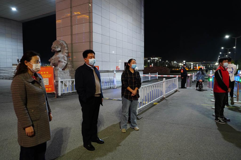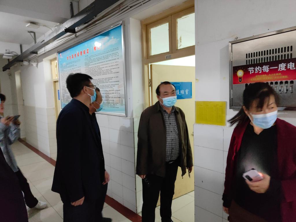 10月15日晚,党委书记温道军深入孔明路、光武路校区,督察指导关键时间节点的安全稳定和疫情防控工作,学校党政办公室、党委宣传部、保卫处、学生处、后勤服务中心、建筑工程学院、五年制管理中心等单位工作人员