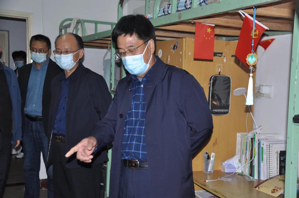 10月19日晚,副校长贾庆成带领值班中干、经济贸易学院院长张延泰、党总支副书记王存才和辅导员老师深入学生公寓查看宿舍内务情况,排查宿舍安全隐患,指导疫情防控工作并与同学们亲切交流。校领导仔细查看每间宿