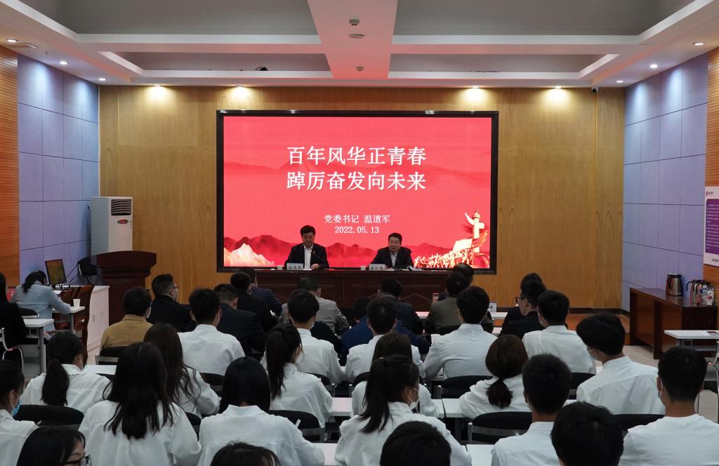 回顾百年团史、凝聚青春力量,5月13日,党委书记温道军以《百年风华正青春 踔厉奋发向未来》为题,在图文信息楼T1126,为学校“青马工程”学生代表、团员干部代表上了一堂内涵丰富、精彩生动的思政课,思政