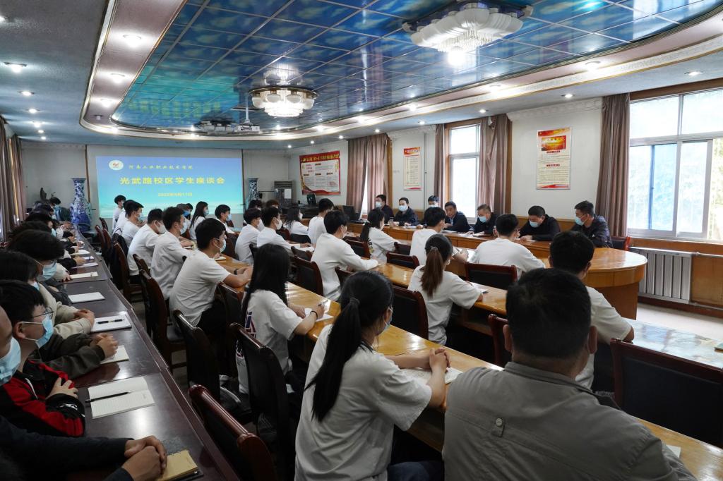 5月11日,校长王伟深入光武路校区,与建筑工程学院、测绘环保工程学院、五年制管理中心学生面对面座谈,充分了解学生在封闭管理期间的思想、学习、生活情况,要求相关单位以服务学生为中心助力学生成长成才。座谈