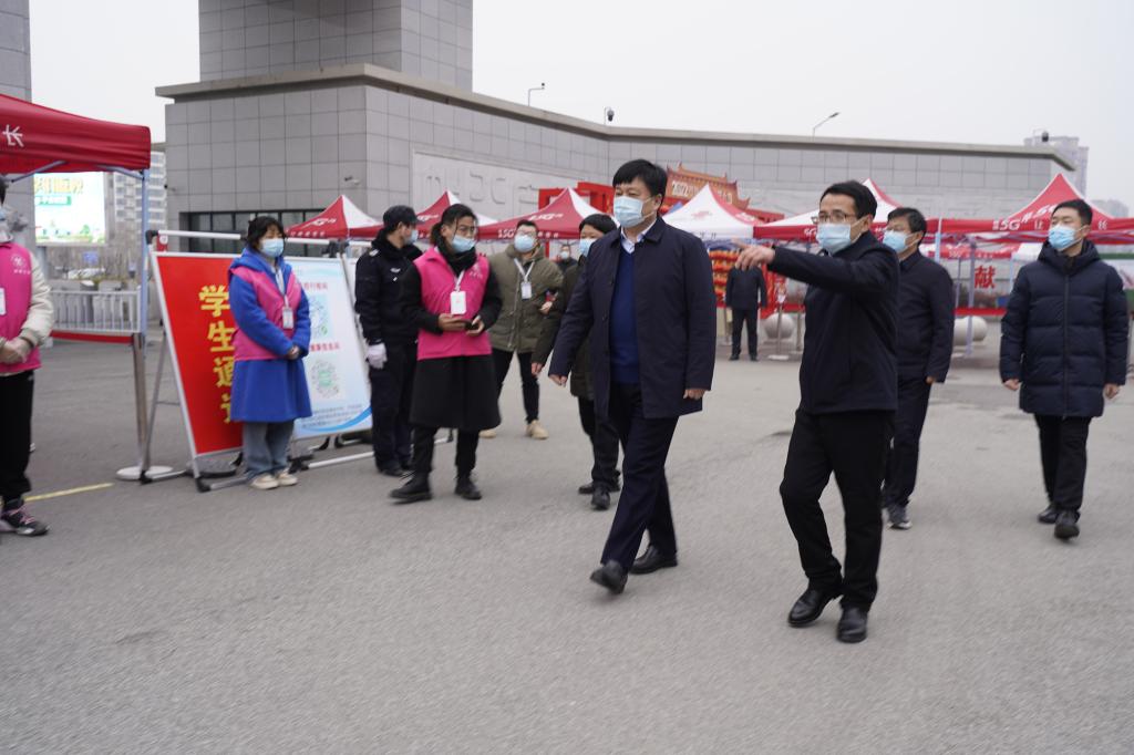 根据学校2022年春季开学工作安排和疫情防控工作要求,2月19日,学生分批错峰错时返校,校领导温道军、王伟、杜建根、刘纪山、贾庆成、屈保中,带领相关单位工作人员,深入孔明路、光武路校区学生返校现场,检