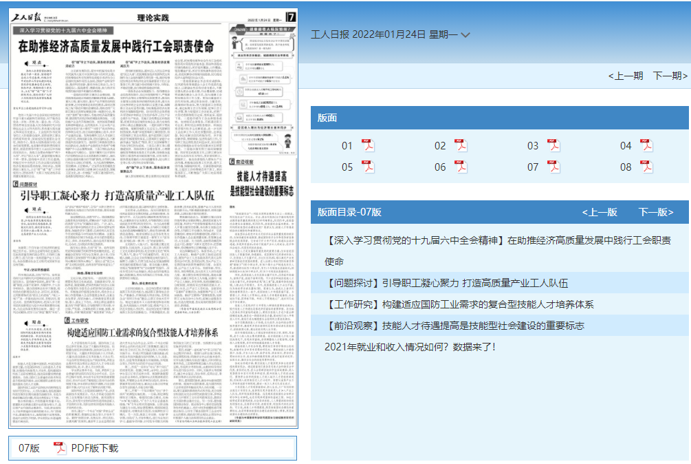 1月24日,《工人日报》刊发学校工会主席屈保中撰写的理论文章《构建适应国防工业需求的复合型技能人才培养体系》,报道了学校在复合型技术技能人才培养工作中的探索经验和研究成果。网址链接:http://me