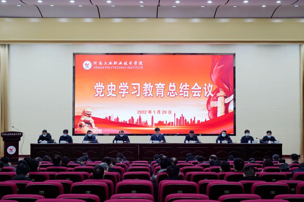 2022年1月20日,学校党史学习教育总结会议在孔明路校区大学术报告厅举行。会议总结学校党史学习教育开展情况,对下一步持续推进党史学习教育常态化、长效化,不断巩固拓展党史学习教育成果作出部署。校领导温