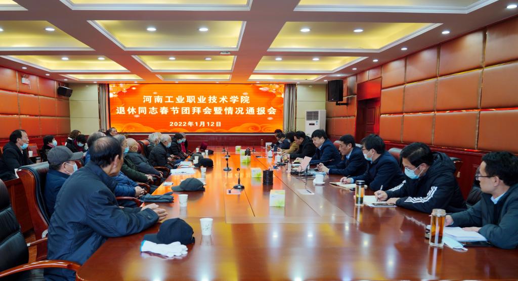 2022年1月12日,学校在孔明路校区行政楼四楼会议室召开退休同志春节团拜会暨情况通报会。党委书记温道军、校长王伟、副校长樊有平出席,各有关部门负责人和退休同志代表参加会议。会议由樊有平主持。首先,王