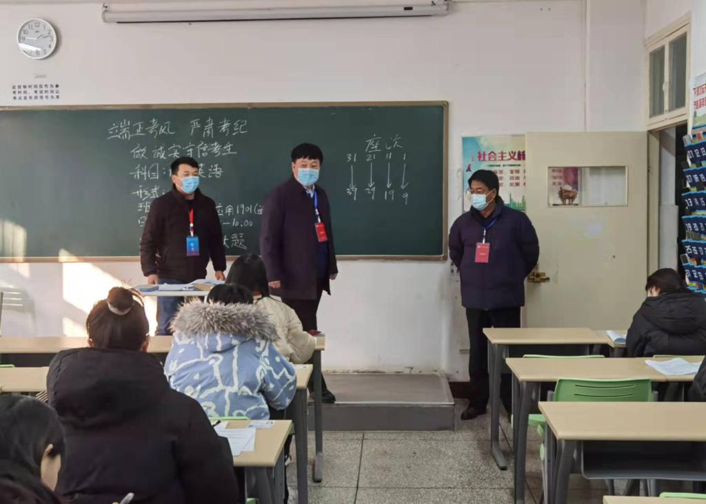 12月27日上午,学校党委书记温道军、校长王伟、副校长贾庆成在教务处等部门工作人员的陪同下,深入孔明路校区、光武路校区期末考试现场巡查。在孔明路校区,温道军详细查看了疫情防控措施落实情况、监考教师履职