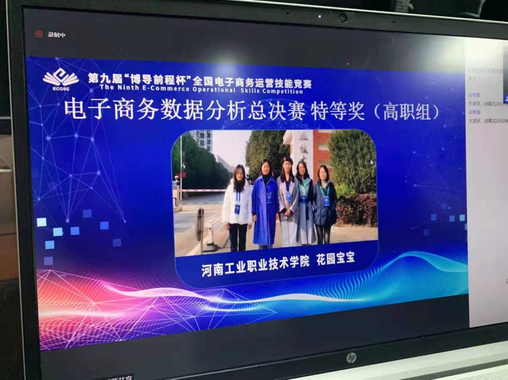 2021年12月19日,第九届“博导前程杯”全国电子商务运营竞赛总决赛在苏州经贸职业技术学院举行,经过激烈的角逐,我校经济贸易学院刘娟和赵蕾老师带领的参赛队(花园宝宝队:白璐、刘笑语、杨君怡)在商务数