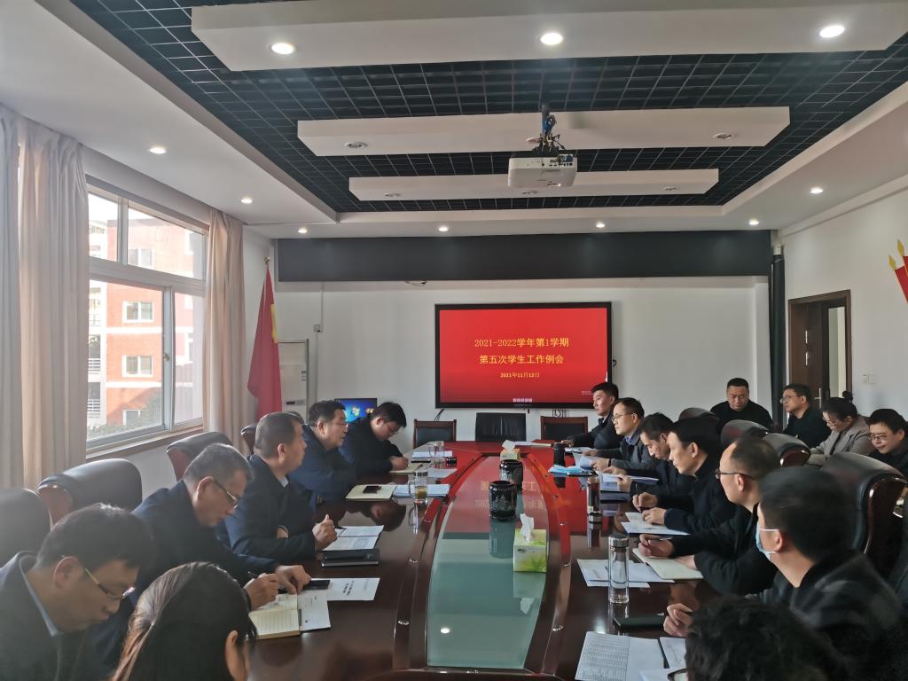 11月12日下午,我校在孔明路校区行政楼三楼会议室召开本学期第五次学生工作例会。副校长王仁伟出席并主持会议,学生处、团委、保卫处、心理健康教育中心、后勤处、后勤服务中心负责人以及各学院(中心)党总支书
