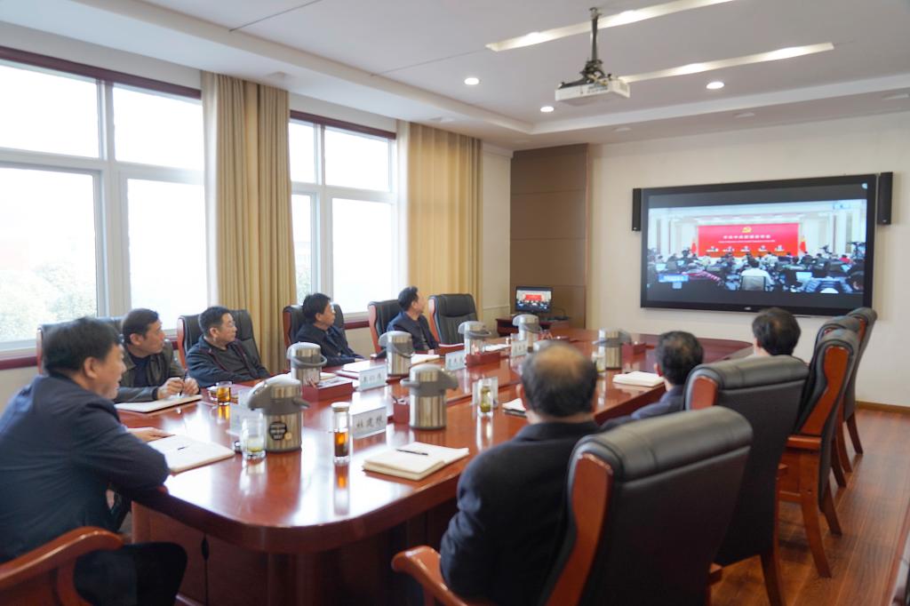 11月12日上午10时,中共中央举行新闻发布会,介绍党的十九届六中全会精神。学校全体领导班子在行政楼二楼会议室,各党总支、直属党支部在本单位会议室,青年学生在多媒体教室通过网络直播集中收看新闻发布会。
