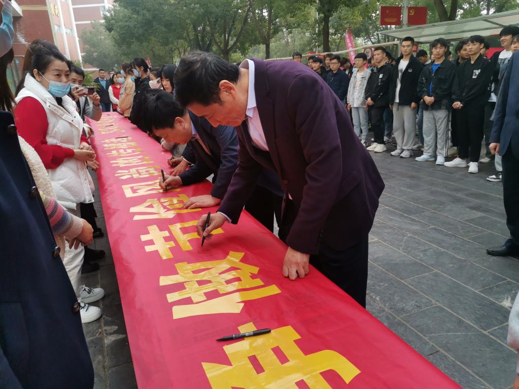 校领导参加校园“节水节电节粮”大型签名承诺活动