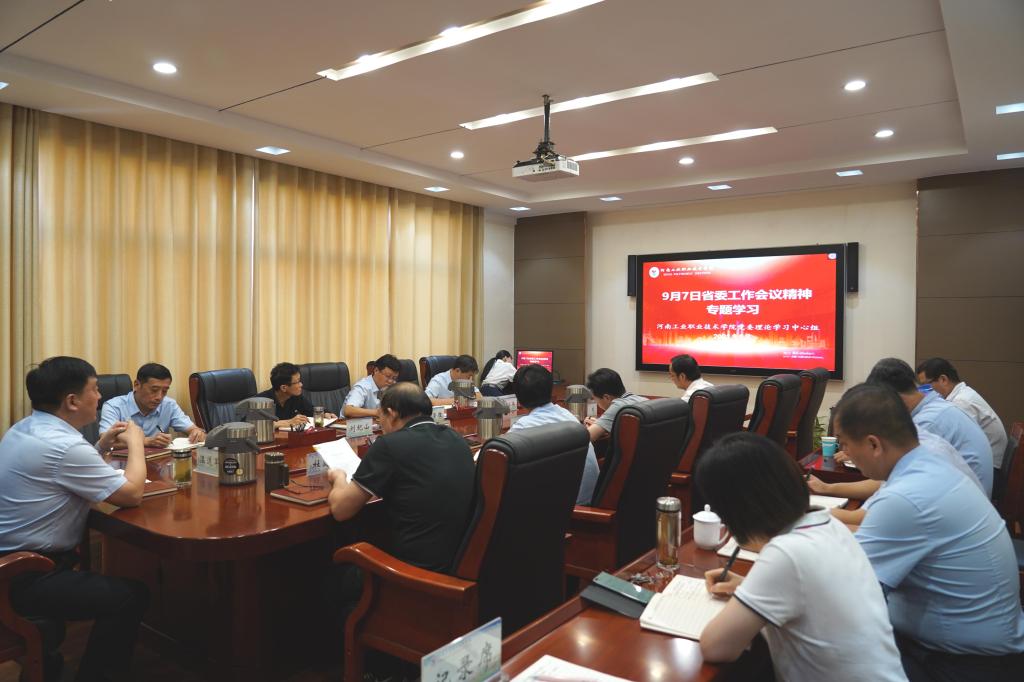 9月13日下午,学校党委理论学习中心组在孔明路校区第二会议室召开集中学习会,专题学习9月7日省委工作会议精神。党委书记温道军主持会议,全体党委理论学习中心组成员参加学习。党委副书记杜建根领学省委书记楼