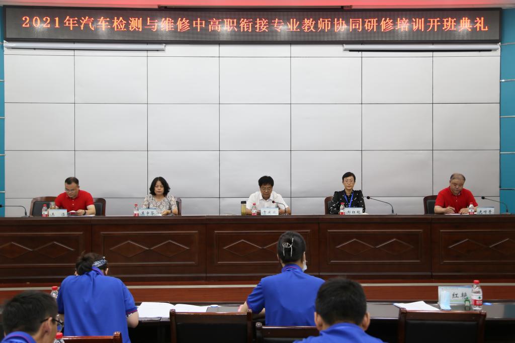 7月11日上午,由我校承担的新疆生产建设兵团2021年度职业院校教师素质提高计划汽车检测与维修中高职衔接专业教师协同研修培训开班典礼在孔明路校区第一会议室举行。副校长贾庆成、新疆生产建设兵团十三师职业