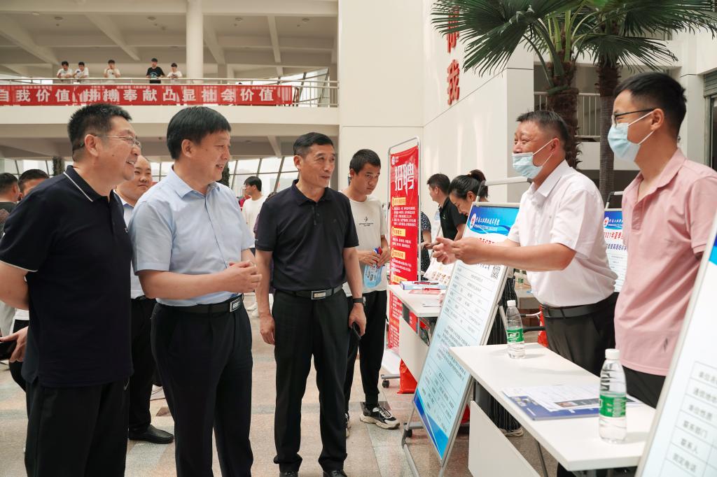 6月11日,学校2021年毕业生夏季招聘双选会在图文信息楼二楼大厅成功举办。党委书记温道军、校长王伟和副校长王仁伟到双选会现场与招聘单位亲切交谈,了解用人单位需求及招聘情况,听取用人单位对学校人才培养