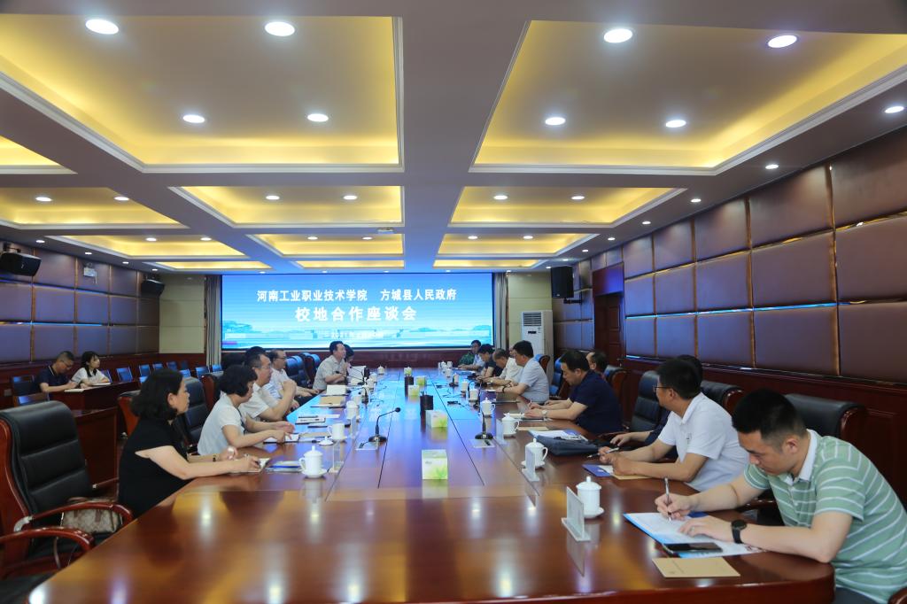 6月10日下午,学校与方城县人民政府校地合作座谈会在四楼会议室举行。学校党委书记温道军、党委副书记杜建根、纪委书记李荣胜、工会主席屈保中、方城县政府副县长董玉坤、县政府办副主任张天庆、县委统战部常务副
