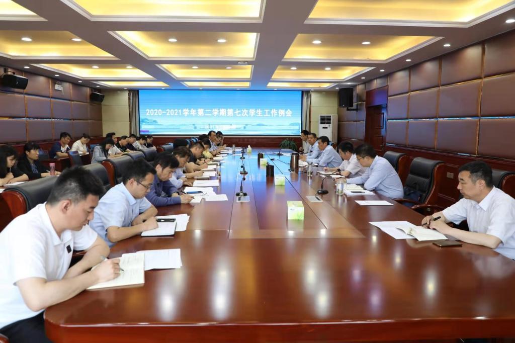 5月27日下午,我校本学期第七次学生工作例会在孔明路校区行政楼四楼会议室召开。校长王伟、副校长王仁伟出席会议,学生处、团委、保卫处、心理健康教育中心、后勤处、后勤服务中心负责人以及各院系党总支书记、副