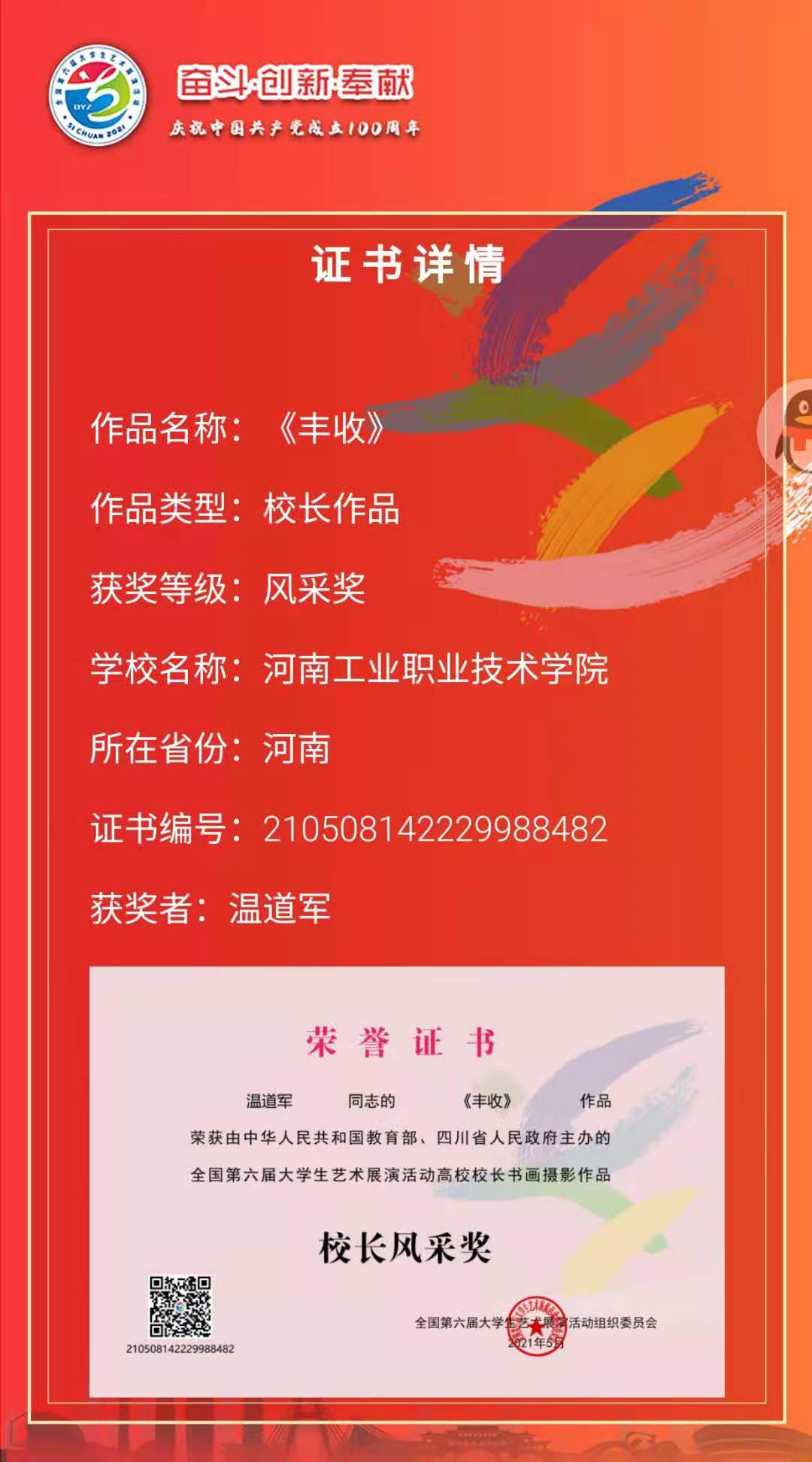 5月20日,在“永远跟党走”南阳市庆祝中国共产党成立100周年职工合唱比赛上,我校追梦合唱团演唱的《唱支山歌给党听》荣获二等奖,校长王伟参加比赛。学校此次参赛合唱团由校领导和来自各院系、部门爱好音乐的