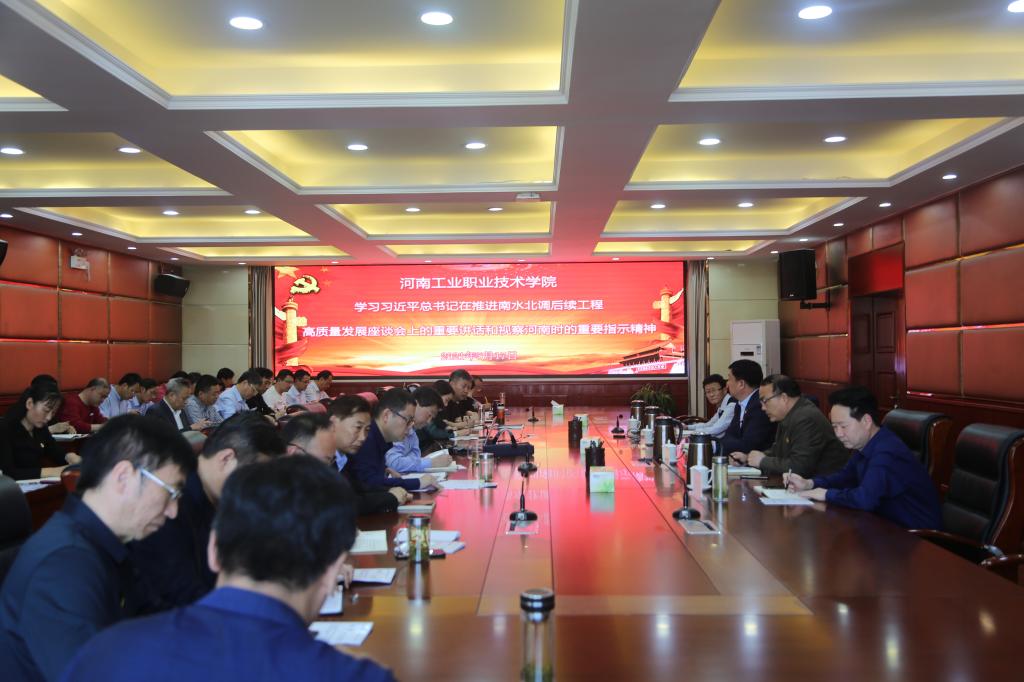5月17日下午,学校在行政楼四楼会议室召开全校领导干部会议,传达学习习近平总书记在推进南水北调后续工程高质量发展座谈会上的重要讲话和在南阳视察调研时的重要指示精神,同时传达全省和南阳市领导干部会议精神