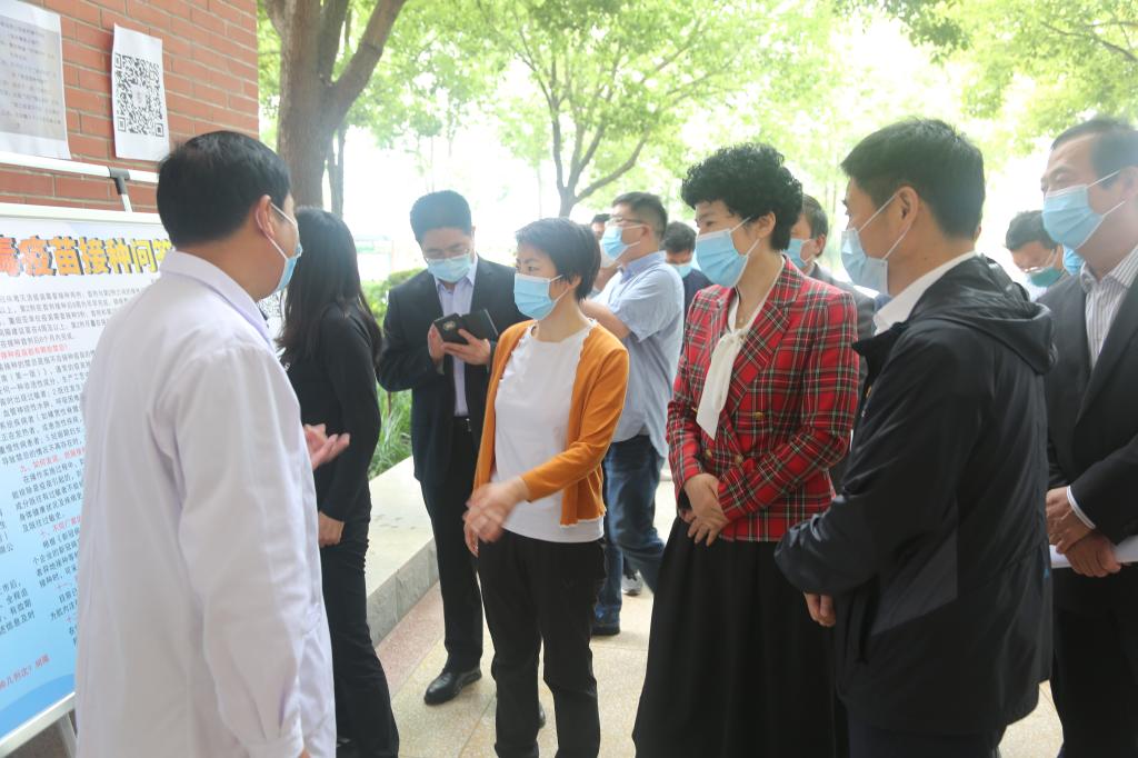 5月19日上午,国务院驻点工作组组长、国家卫生健康委监督中心二级巡视员贾玉萍一行4人到我校接种点督导新冠病毒疫苗接种工作。在我校临时接种点实地核查了新冠疫苗接种流程、疫苗冷链供应、接种点区域设置以及医