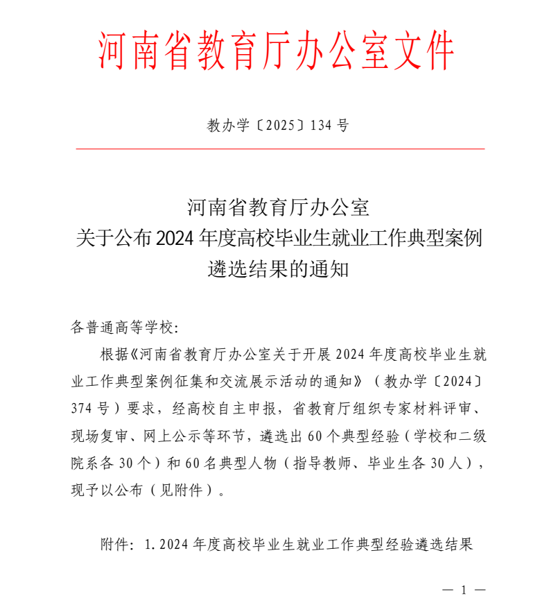 喜报!学校4项案例全部入选河南省“2024年度高校毕业生就业工作典型案例”