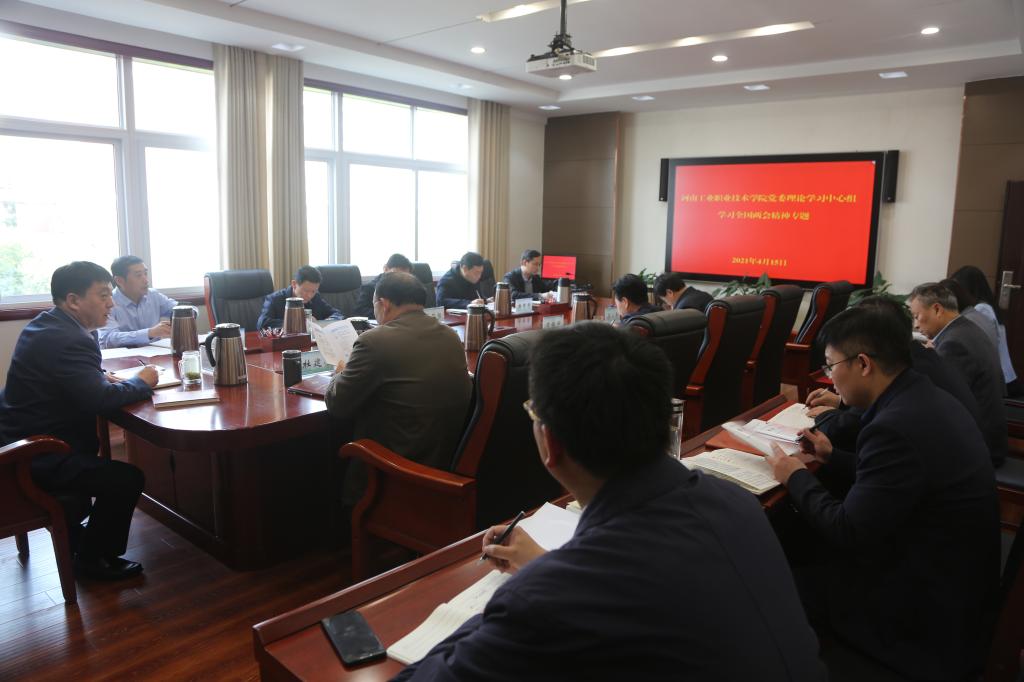 4月15日下午,学校党委理论学习中心组在孔明路校区召开集中学习会,专题学习全国两会精神。党委书记温道军主持会议,全体党委理论学习中心组成员参加学习。党委副书记杜建根领学了2021年政府工作报告要点等全