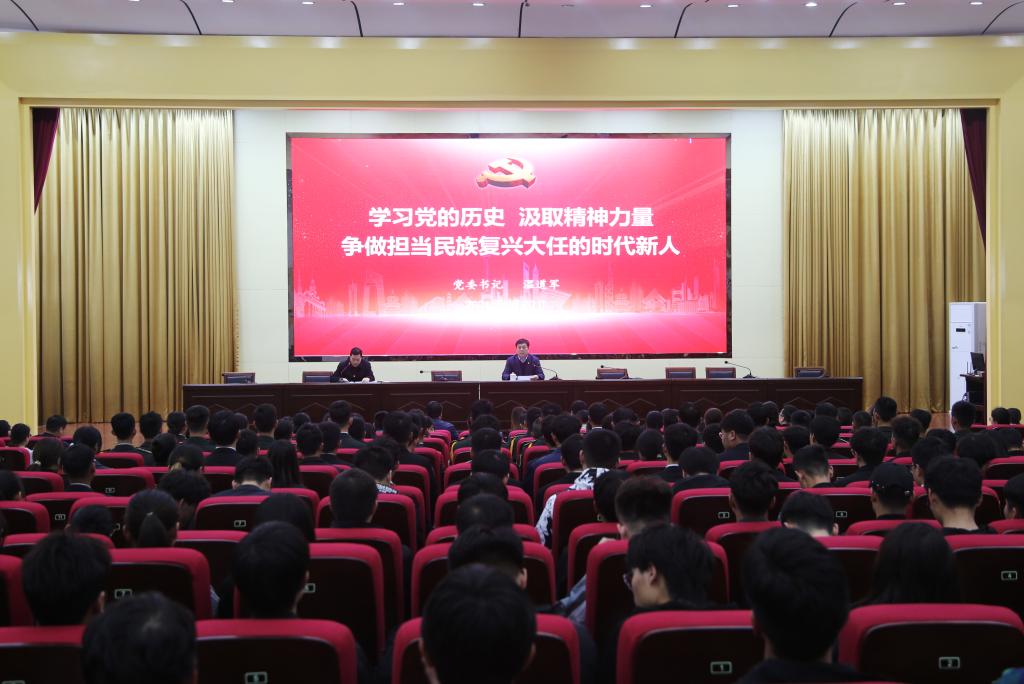 4月20日,学校党委书记温道军以《学习党的历史 汲取精神力量 争做担当民族复兴大任的时代新人》为题,在学校大学术报告厅为广大师生讲授党史学习教育专题思政课,思政课由学校副校长樊有平主持,学校马克思主义