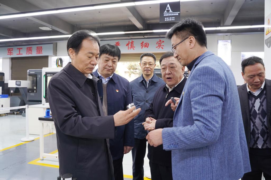 4月3日,河南省工业和信息化厅党组书记、厅长李涛,省纪委监委驻省工业和信息化厅纪检监察组组长朱永飞,省委军民融合办副主任袁玉新等莅临学校调研指导工作。校领导温道军、杜建根、王仁伟、李荣胜、屈保中、樊有