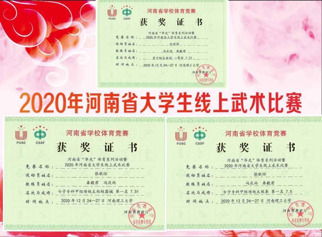 我校师生在2020年河南省“华光”体育活动大学生线上武术比赛中获奖