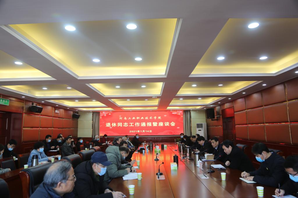 1月14日上午,学校在孔明路校区行政楼四楼会议室召开学校退休同志工作通报暨座谈会。校党委书记温道军、校长王伟、校党委副书记杜建根、副校长樊有平出席会议,各有关部门负责人及退休同志代表参加会议。会议由樊