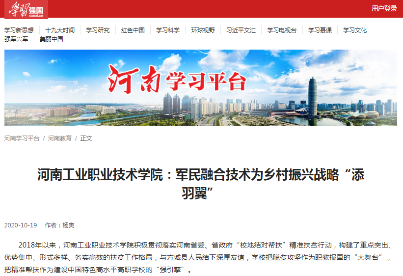 学习强国:河南工业职业技术学院 军民融合技术为乡村振兴战略“添羽翼”