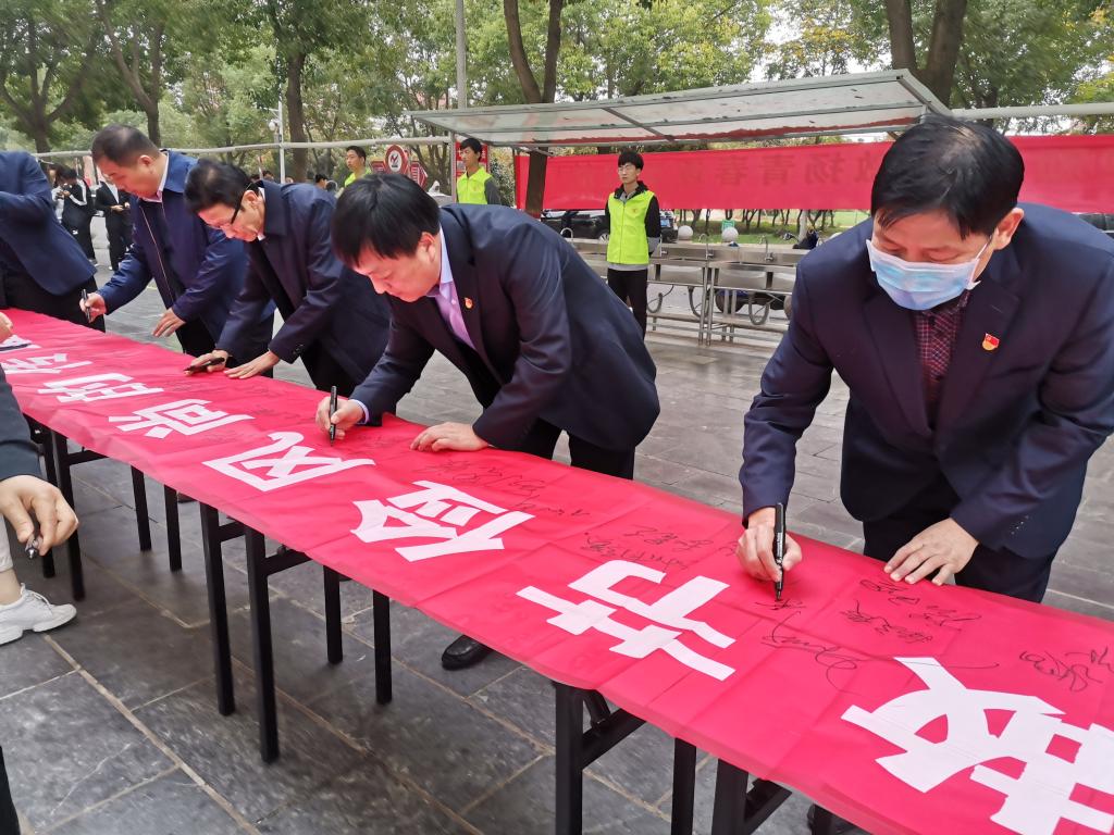 校领导参加我校“节水、节电、节粮”大型签名活动