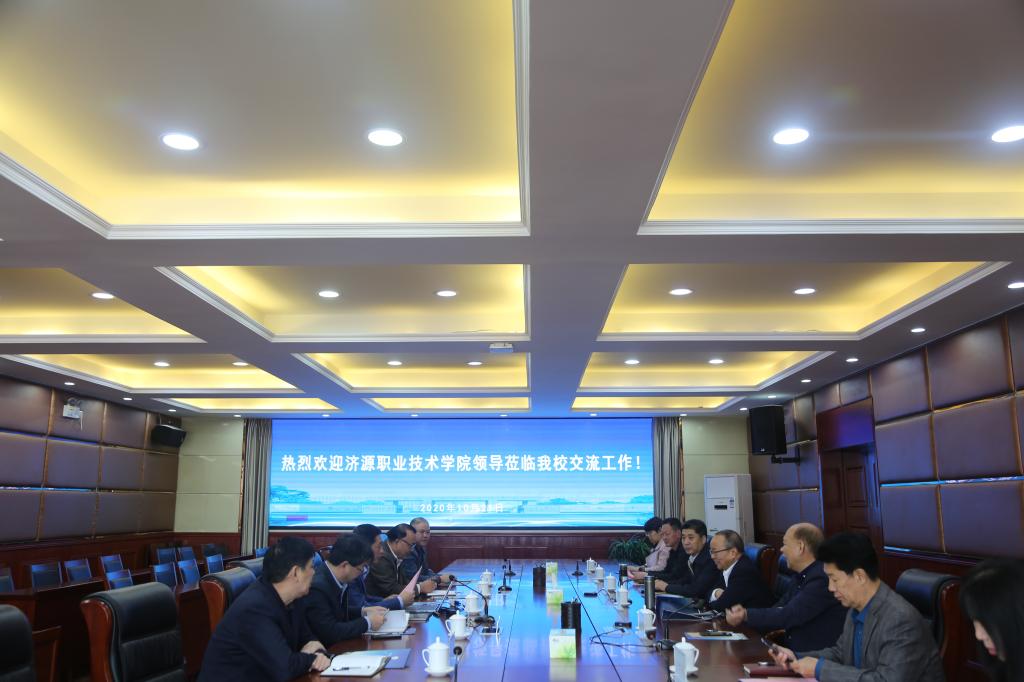 10月21日,济源职业技术学院院长李国峰、副院长郝小会等一行7人到我校交流工作,学校校长王伟、党委副书记杜建根,党政办公室、科技外事处、后勤服务中心等部门负责人与来宾在行政楼四楼会议室座谈。王伟代表学