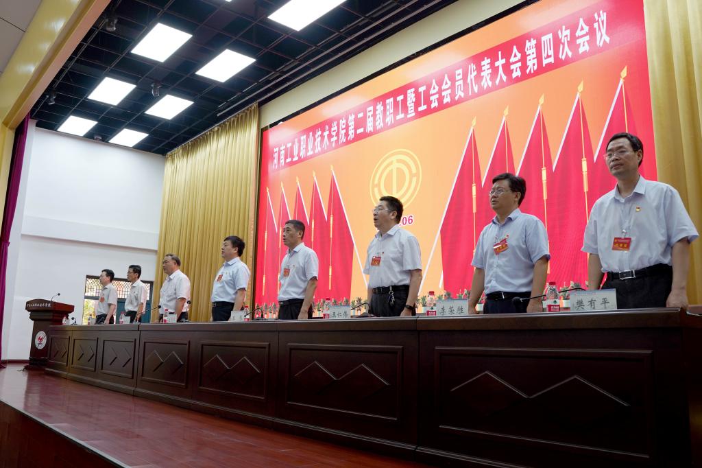 6月30日,学校第二届教职工暨工会会员代表大会第四次会议在孔明路校区报告厅举行。校领导温道军、王伟、杜建根、王仁伟、刘纪山、李荣胜、屈保中、樊有平和百余名正式代表参加会议。党委书记温道军主持上午8点3