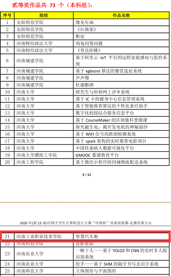 在刚刚结束的“2020 年(第 13 届)中国大学生计算机设计大赛'玲珑杯'河南省级赛”中,河南工业职业技术学院提交的设计作品获得一等奖3个,二等奖6个,三等奖7个,获奖数量和等级位列专科组第一名,与