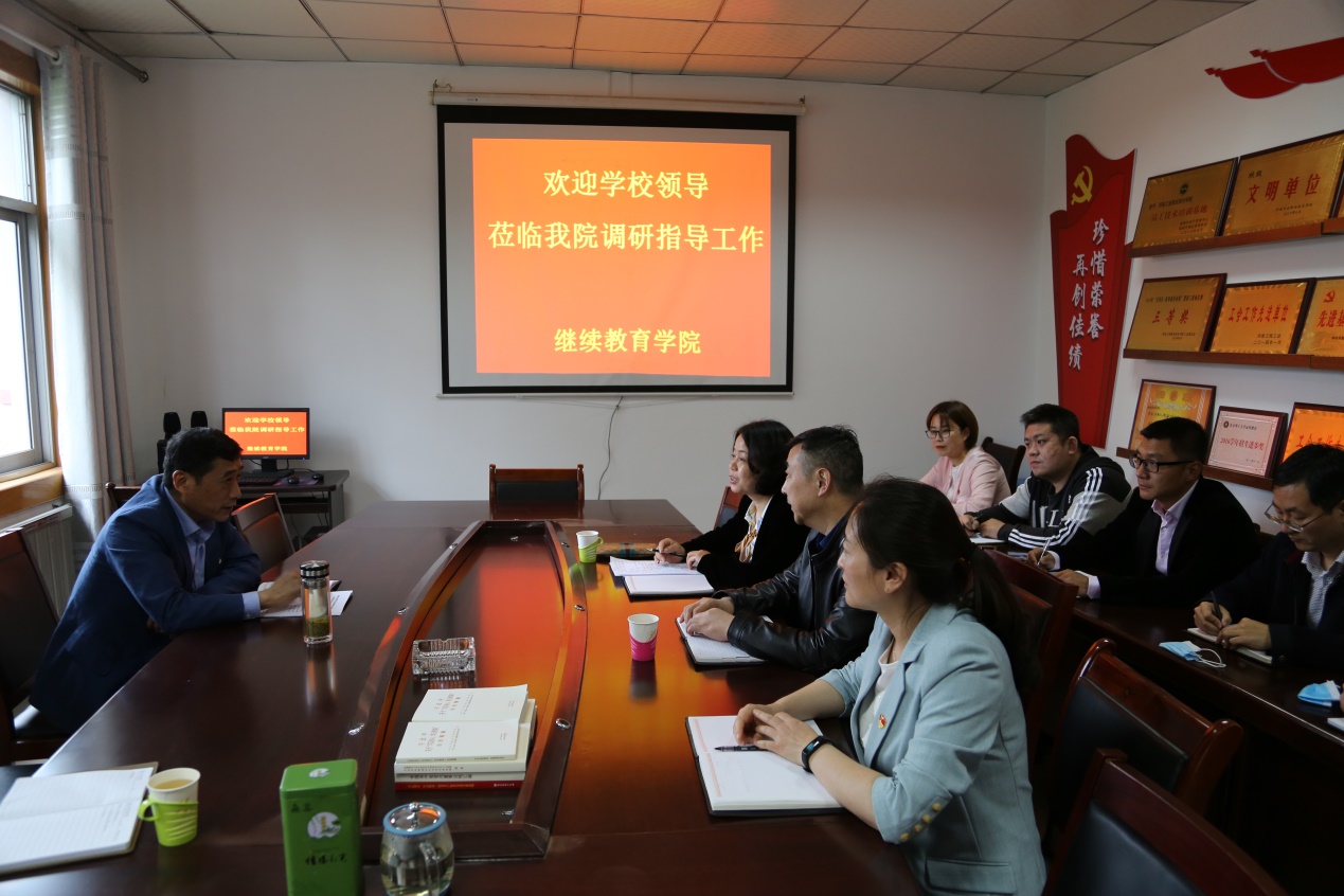 5月9日上午,校长王伟到继续教育学院调研指导工作,继续教育学院副科级以上人员参加调研座谈会。座谈会上,继续教育学院院长莫宇芬从社会培训、成人高等学历教育、中职教育等几方面对继续教育学院近年来的整体发展