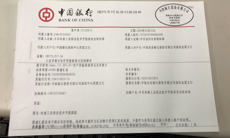 我校党员踊跃捐款支持新冠肺炎疫情防控工作