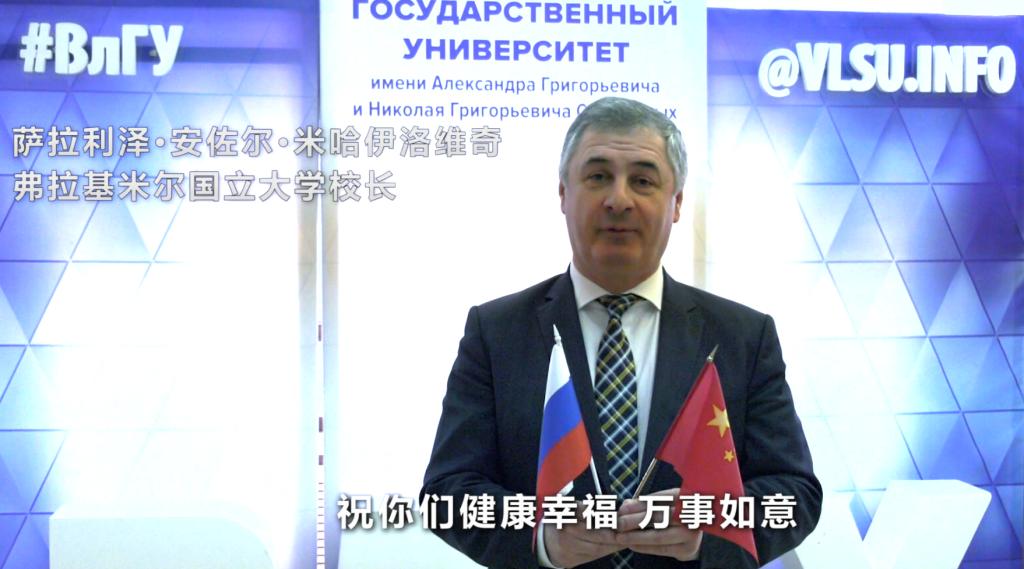 在全校上下戮力齐心共战疫情的时刻,学校国外合作院校领导纷纷来信或致电慰问,对我校全体师生表达深切慰问和支持,为中国抗击疫情打气加油! 2月16日,俄罗斯弗拉基米尔国立大学发来视频,校长萨拉利泽·安佐尔