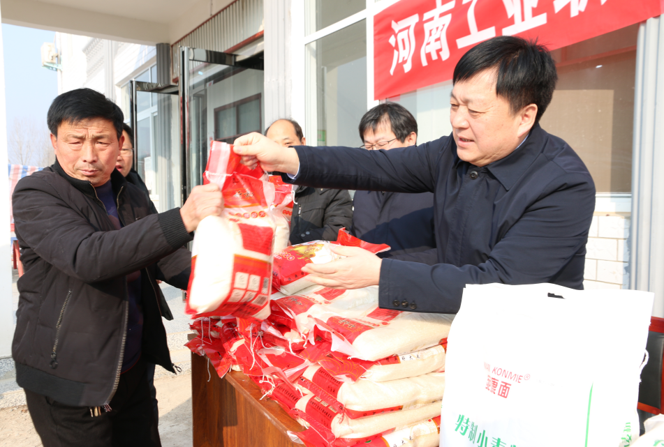 1月4日,校党委书记温道军,副校长杜建根、王仁伟、刘纪山、樊有平带领党政办、组织部、宣传部等部门负责人前往学校定点帮扶村——方城县杨集镇河坡村,看望基层一线驻村干部,走访慰问困难群众,方城县杨集镇党委