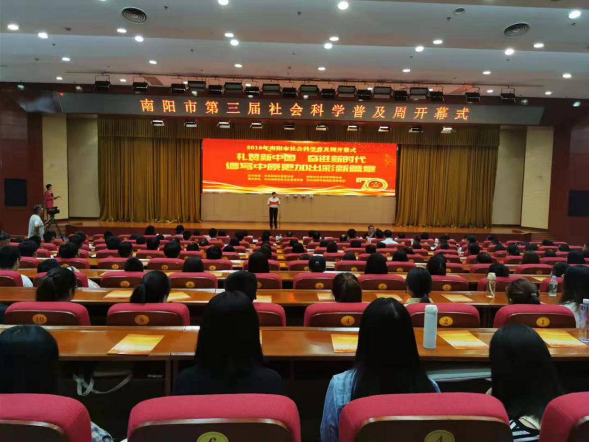 2019年9月26日上午,南阳市第三届社会科学普及周启动仪式在南阳市会议中心举行,我校科技外事处、电子信息工程学院老师和40多名青年志愿者参加了本次活动。开幕式上,南阳市委常委、宣传部长、市社科联主席