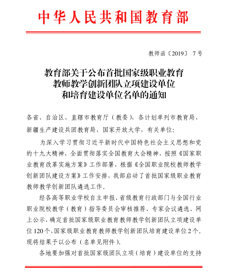 我校被教育部确定为首批国家级职业教育教师教学创新团队立项建设单位
