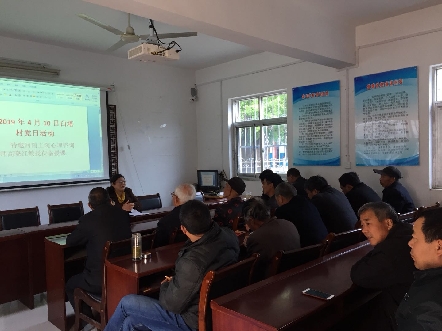 4月10日上午,应白塔村委的邀请,学校文明办组织教工志愿服务队赴白塔村开展心理健康咨询活动。党委宣传统战部副部长朱恩义,国家二级心理咨询师、图书馆副馆长高晓红和国家三级心理咨询师、大学生心理健康教育中