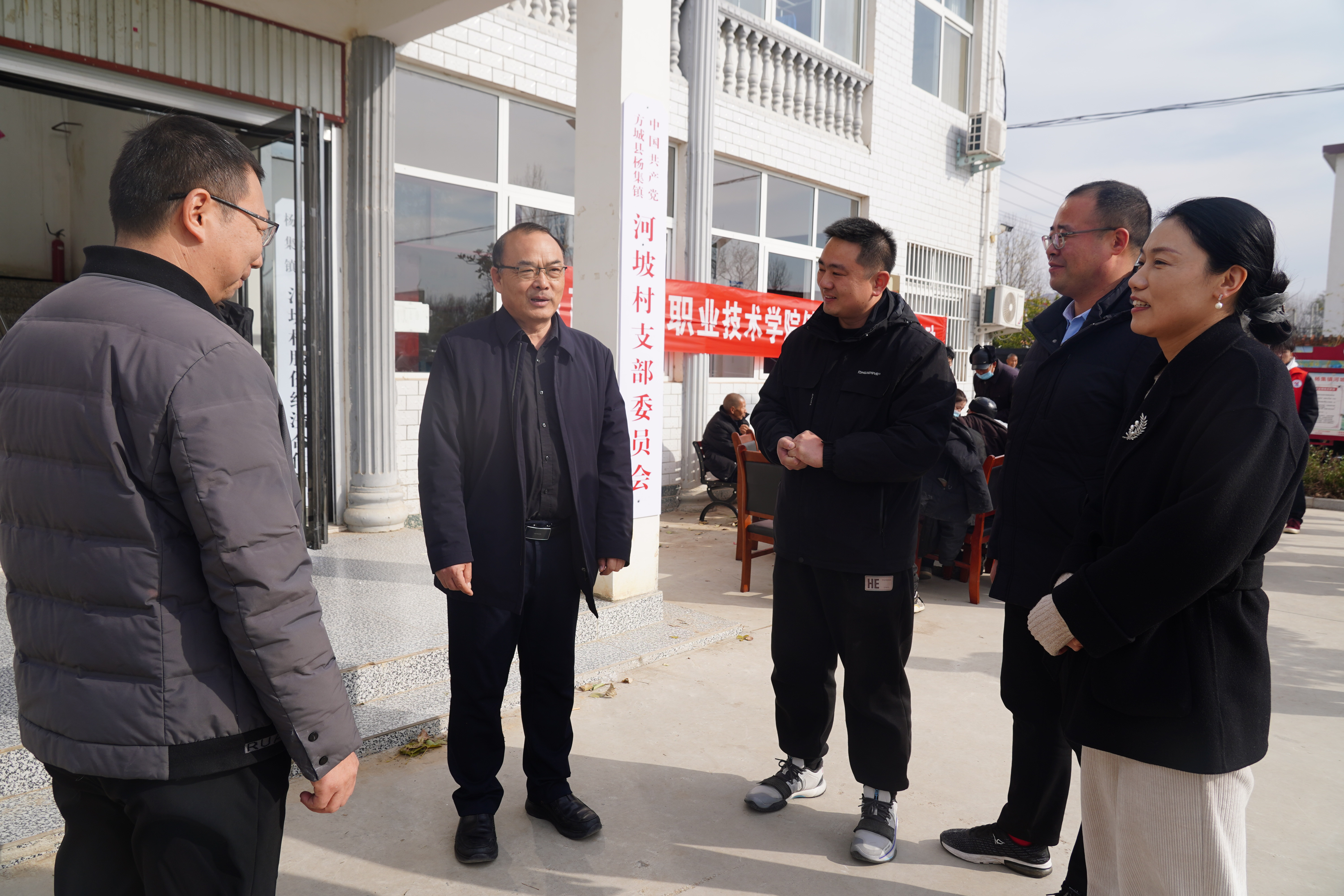 12月5日,学校党委副书记杜建根一行到方城县河坡村开展驻村帮扶,并开展支部结对共建活动。方城县委组织部副部长邵玉民,农业农村局副局长李明豪和学校党委组织部、党委宣传部、校医院、建筑工程学院等相关同志参