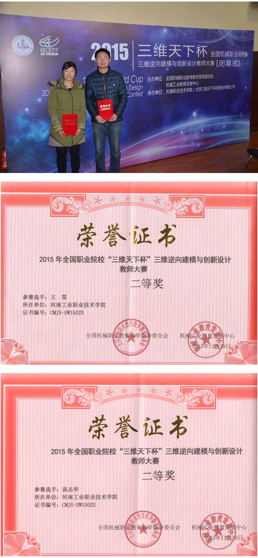 我院教师在2015年全国“三维逆向建模与创新设计教师大赛”中获奖
