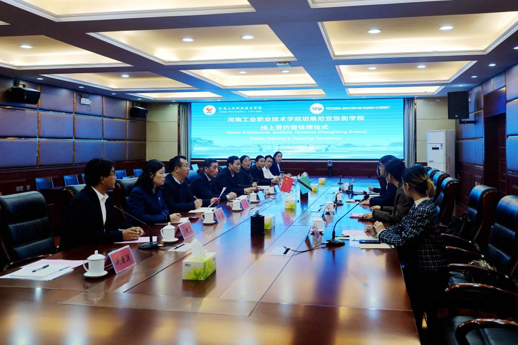 10月24日,学校坦桑尼亚“张衡学院”签约暨挂牌仪式在线上隆重举行。坦桑尼亚职业教育培训局总干事安东尼·卡索尔、职业教育培训事务主管阿布达拉·恩公杜、公共关系经理西塔·彼得、法务秘书长朵拉·姆维塔、人