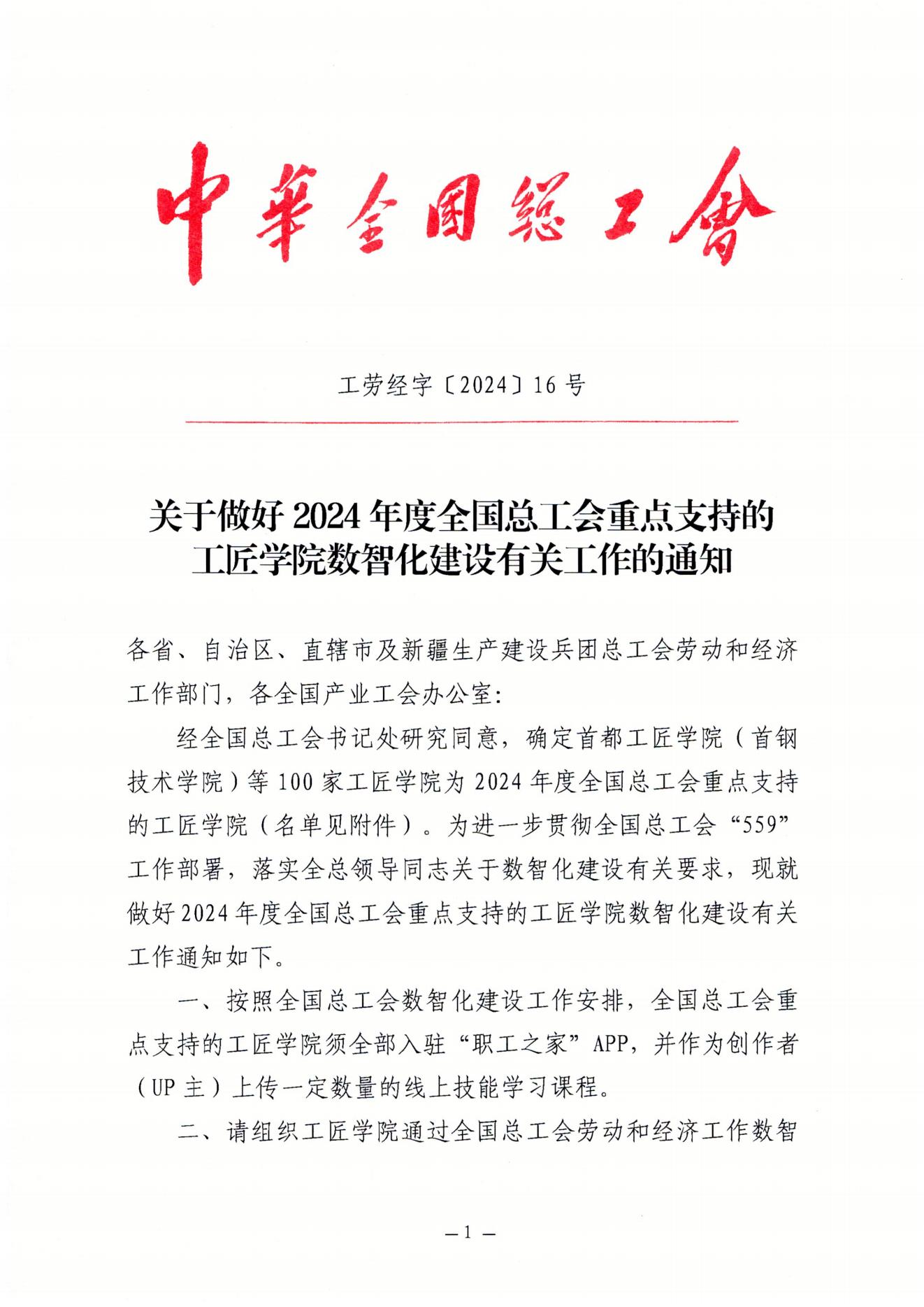 【喜报】我校工匠学院获批2024年度全国总工会“工匠学院建设点”