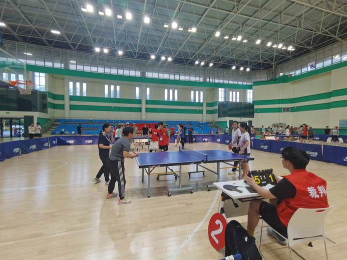 6月18日,学校2024年教职工乒乓球比赛在孔明路校区体育馆圆满落幕。本次比赛得到全体教职工的热情参与,全校来自各分工会12支代表队100余名教职工参加了比赛。 在赛场上,选手们密切配合、接球抢攻、巧