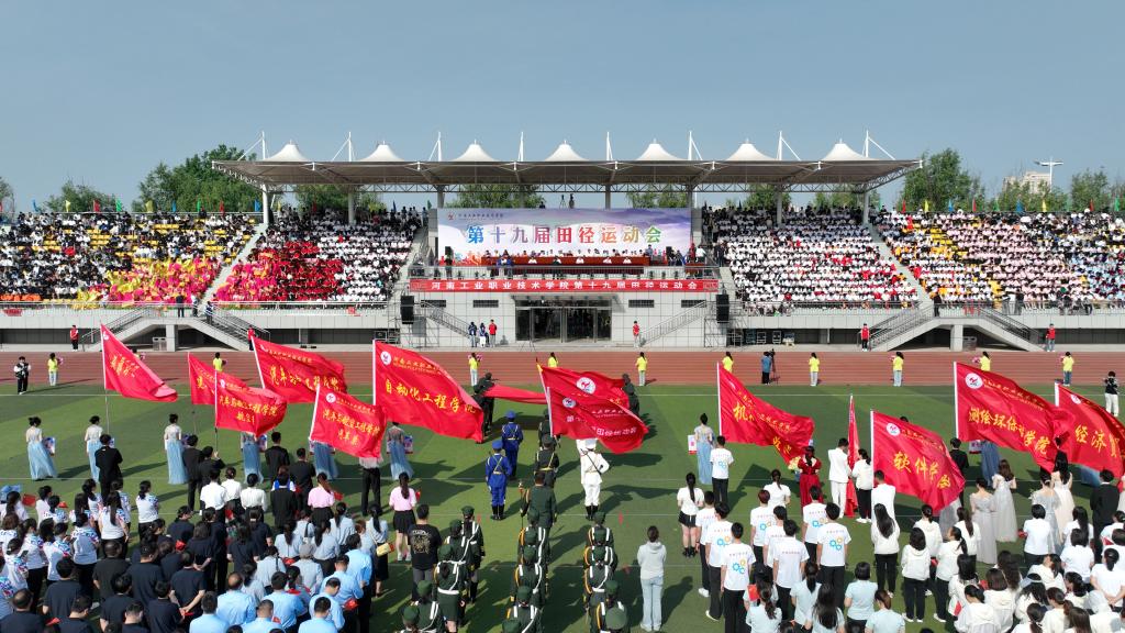 阳光恣意,微风和煦。4月25日上午,河南工业职业技术学院第十九届田径运动会在孔明路校区田径场隆重开幕。学校领导温道军、杜建根、贾庆成、屈保中、樊有平、侯同江出席,大会组委会委员和各代表团团长在主席台观