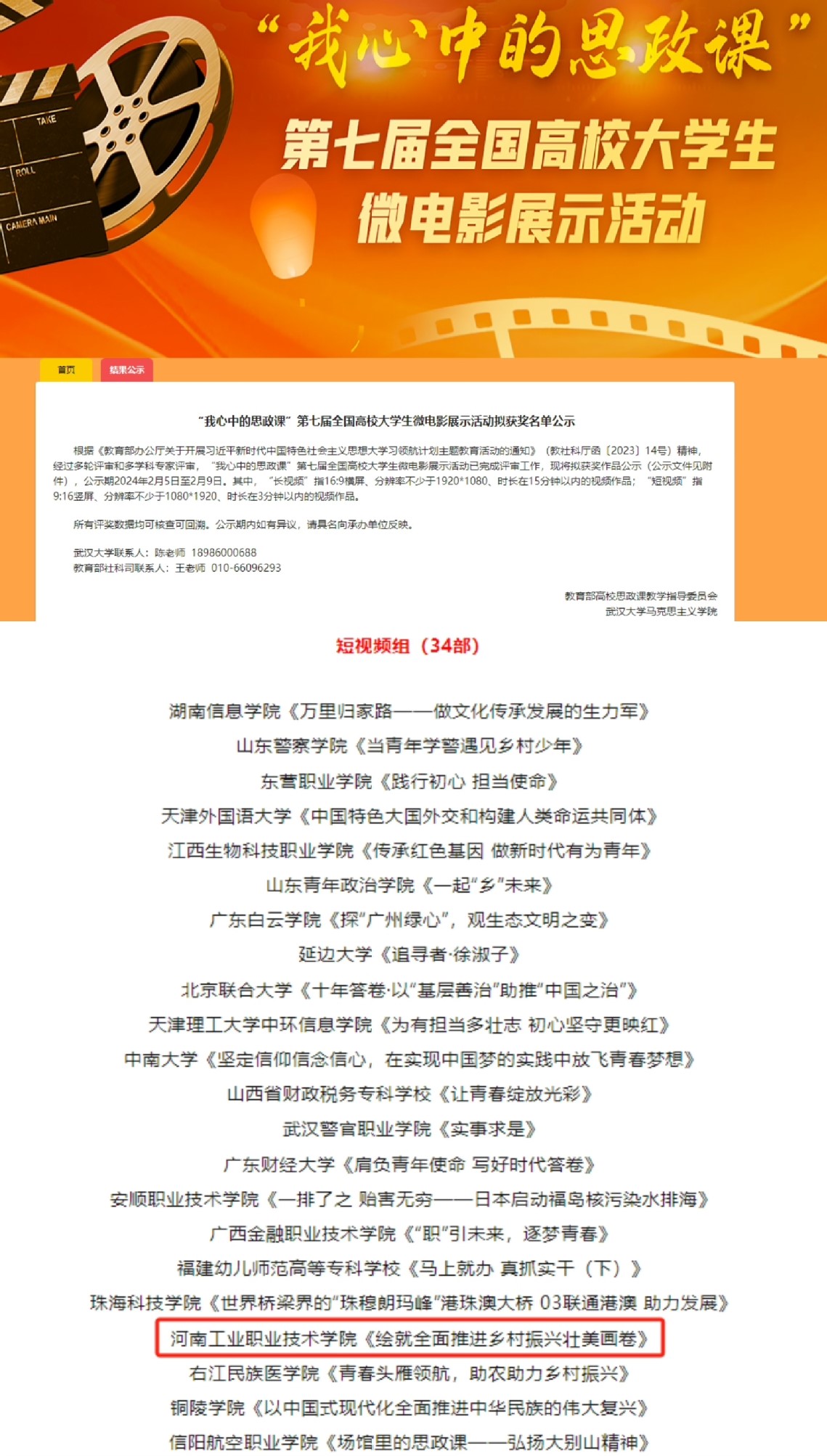 【喜报】我校作品荣获“我心中的思政课”第七届全国高校大学生 微电影展示活动三等奖